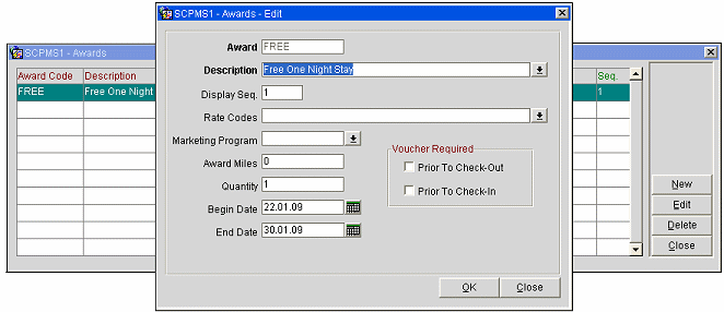 Use Awards setup to store and manage various awards that can be given to members of a property or chain loyalty program. Guest awards allow you to create user-defined guest award types that can be assigned/used by a guest during a visit to the property. The awards (URV-Upgrade Room Voucher, FRW-Free Bottle of Wine, CFC-Complimentary Facial) are stored against the guest’s profile and history details after departure. The possibilities are endless, all resulting in allowing you to monitor and evaluate award/promotion plans. OPERA internally uses the pickbox group AWD; therefore, if you are already using this code for another user-defined pickbox, it will need to be changed. The user is allowed to define award types of up to eight characters, set the number of required points and set the start and end dates as to when an award can be redeemed.