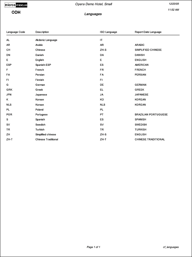 The Configuration report for Languages will display all languages that have been configured in the application.