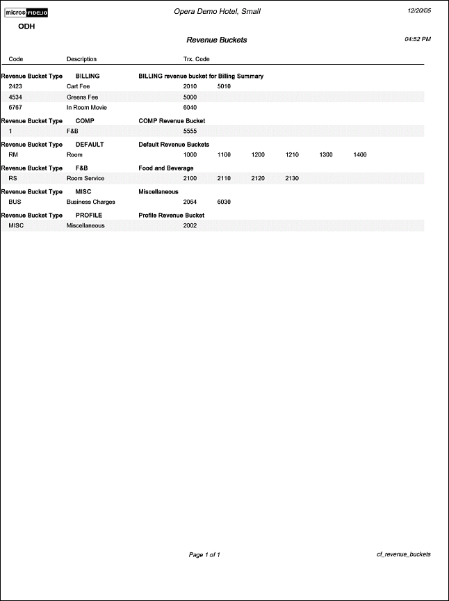 Transaction Code and Description. The report output will display both the Transaction Code and Transaction Description within each Revenue Bucket.