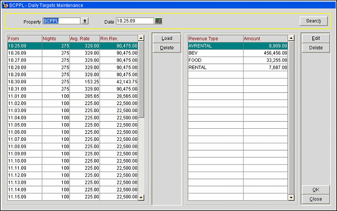 Load. Adds a new daily target record. Takes you to the Daily Targets Load screen. Daily targets can be transferred from remote properties to SFA via OXI when the appropriate business events are configured: