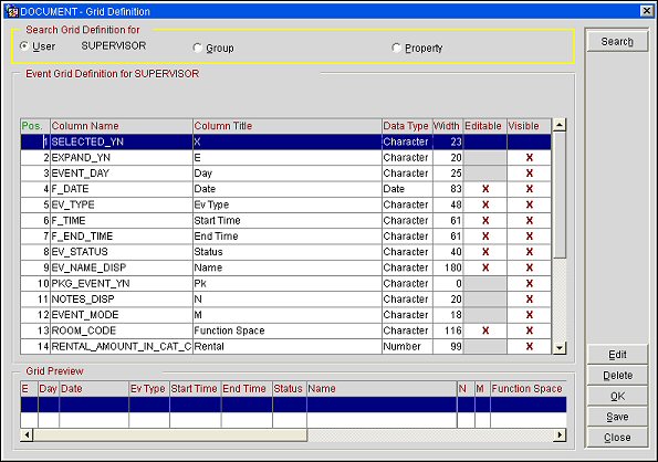 This is a preview of how the grid actually displays using the column criteria defined on this screen. Changes are displayed once the Save button is selected.
